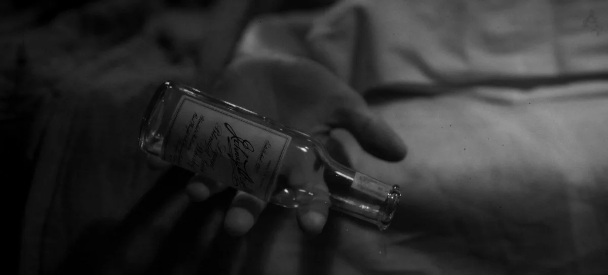 The falling of the alcohol bottle from Herman’s hand gave me a very similar feel to the falling of the globe in the iconic Rosebud scene in Citizen Kane.
